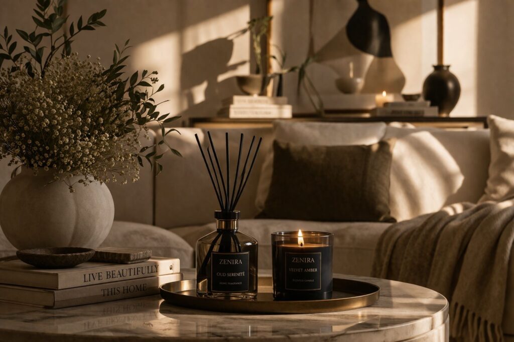 At Zenira, we recognize the profound impact of your environment. Our carefully curated collection of premium home décor, luxury fragrances, aesthetic candles, and gourmet lifestyle products is designed to help you create spaces that inspire, relax, and reflect your individuality. Each product is chosen with a focus on quality, elegance, and sensory experience—ensuring that every detail contributes to a refined and harmonious living space.
